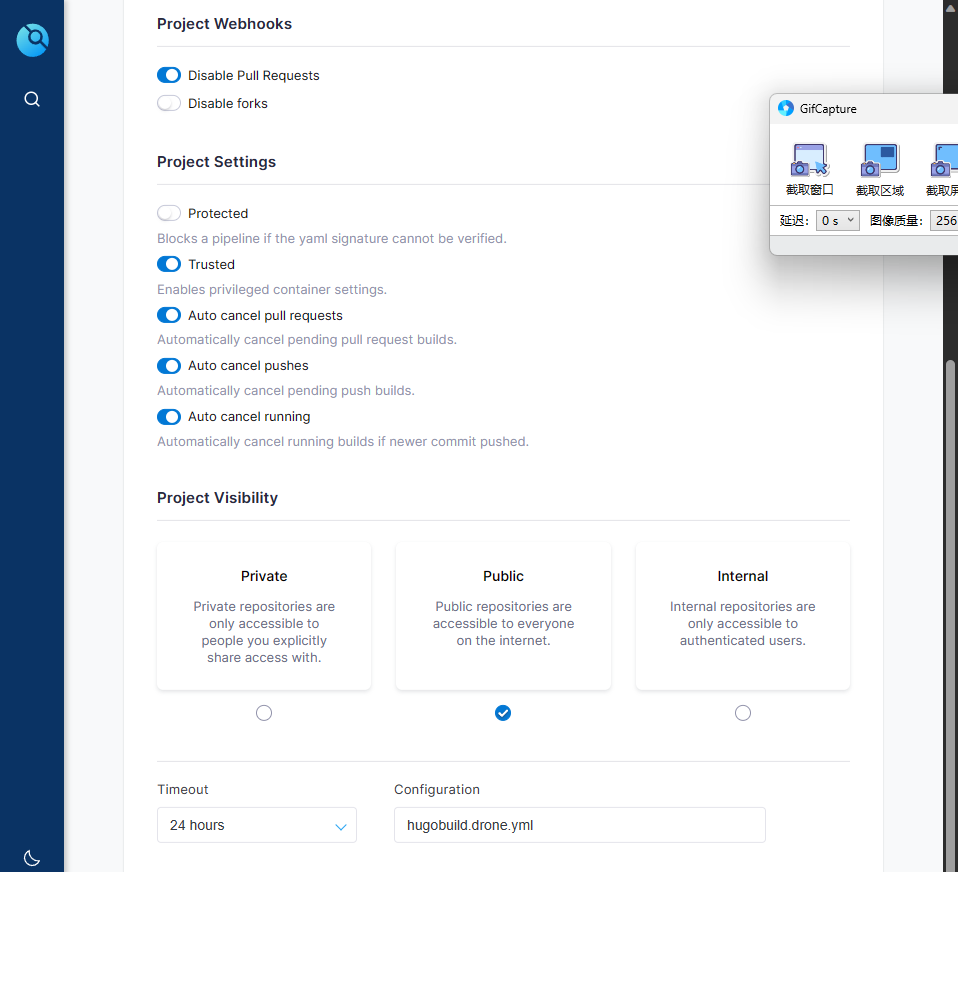 单有流水线设置还不够,流水线流程的定义还需要在项目中使用yaml文件来定义,对应的文件就在drone上设置