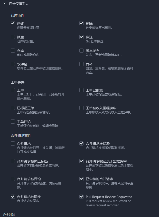 webhook在完成drone的集成时就由drone在对应gitea项目下自动创建,我的需求显然是每次我push新内容后drone自动构建,因此webhook中也要做些修改