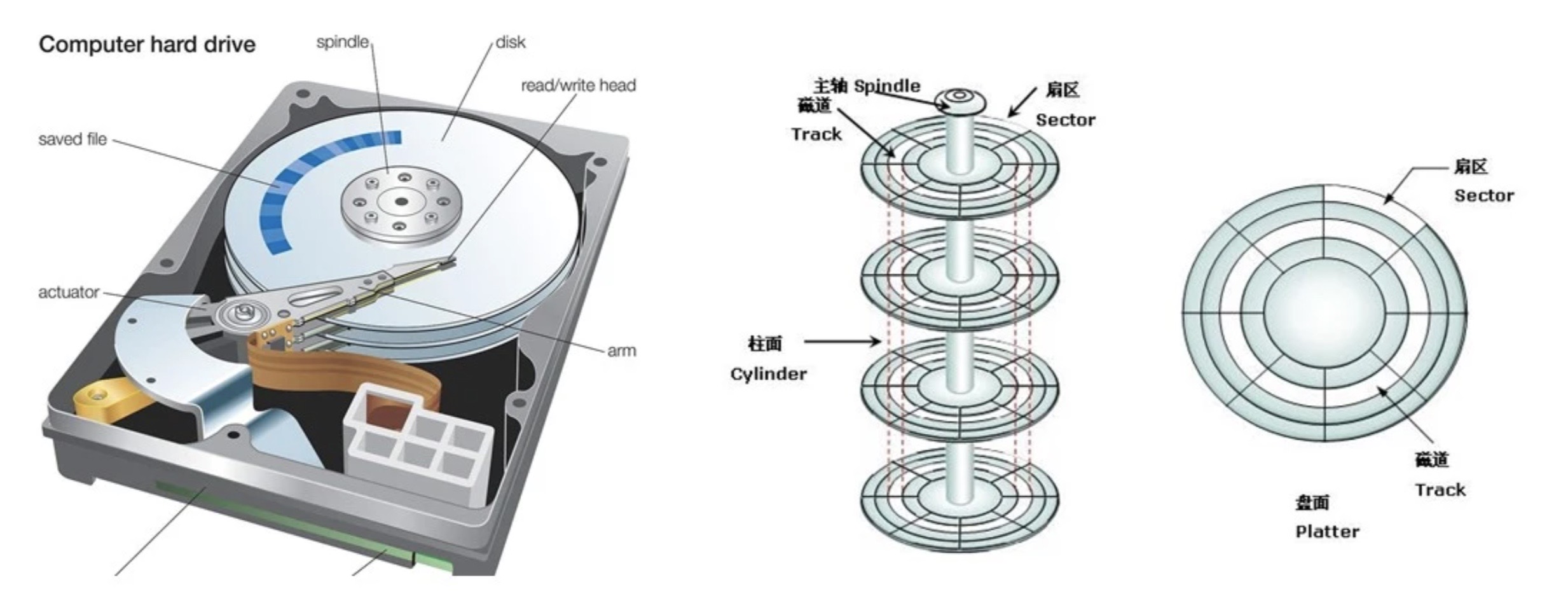 - 磁盘旋转的过程,指定的扇区会从磁头底下划过,这样就完成了对指定扇区的读写