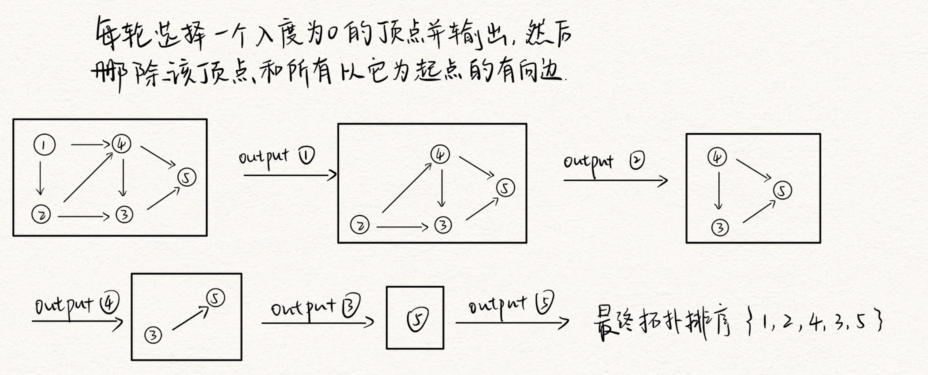 - 若有向无环图的拓扑序列唯一,不能唯一确定该图