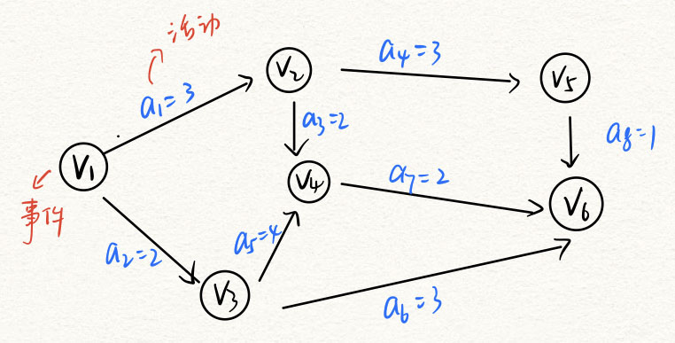 若<Vk,Vj>表示活动$a_i$,则有e(i) = Ve(k)