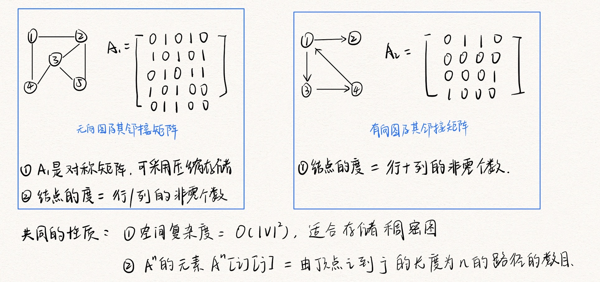 - 一个图的邻接矩阵表示唯一,邻接表表示不唯一