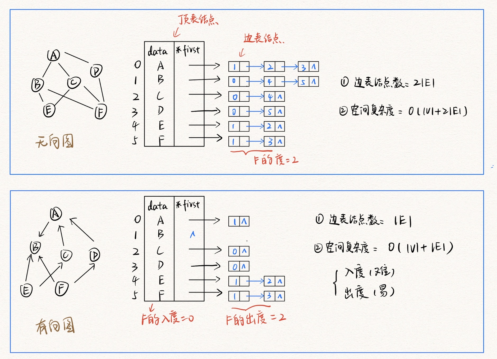 - 所有顶点的出度之和 = 入度之和 = |E|