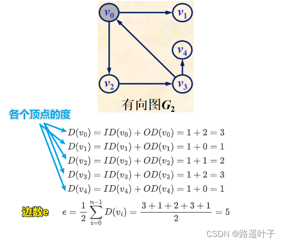 - 对于具有n个顶点,e条边的有向图,出度和 = 入度和 = e对于具有n个顶点,e条边的无向图,度和 = 2e