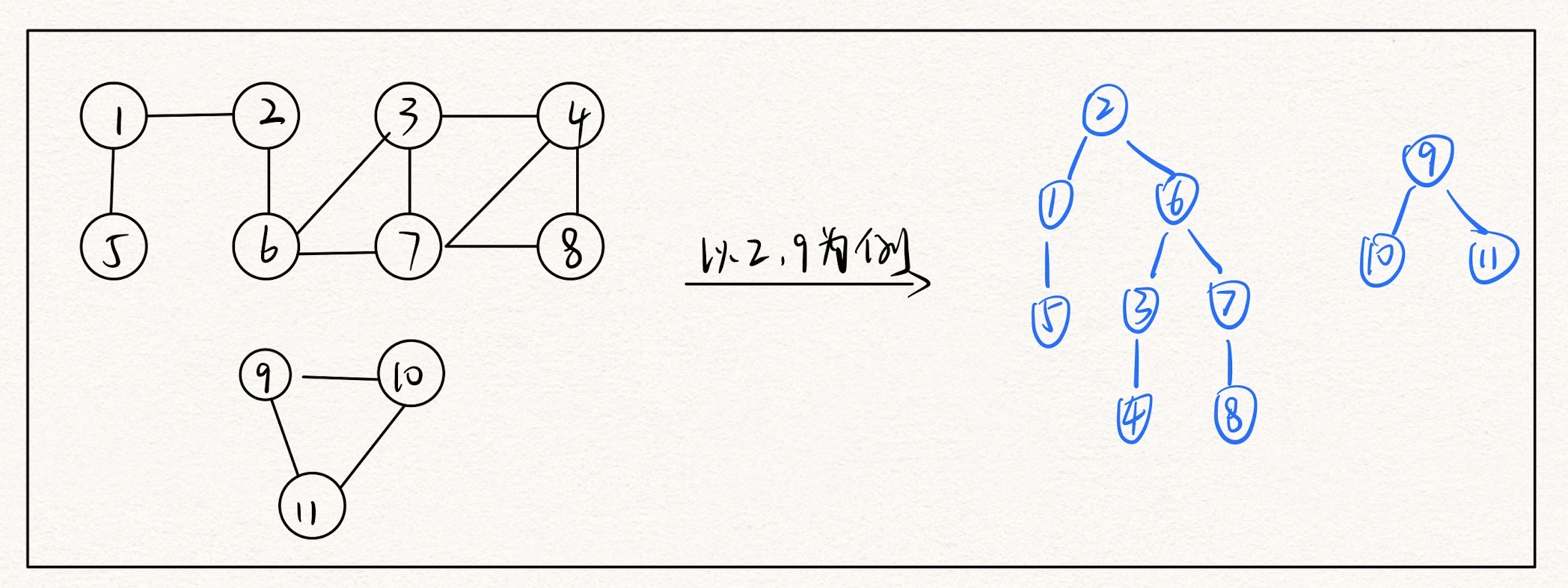 - 对于强连通图,从任一结点出发都只需要调用1次BFS/DFS