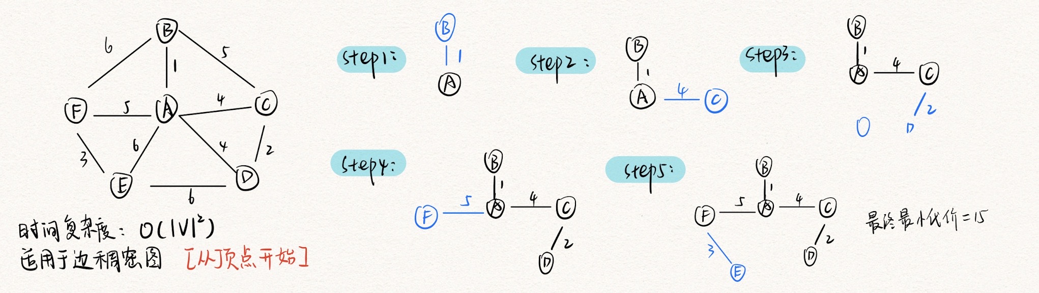 - 采用邻接矩阵存储,时间复杂度为$O(|V|^2)$