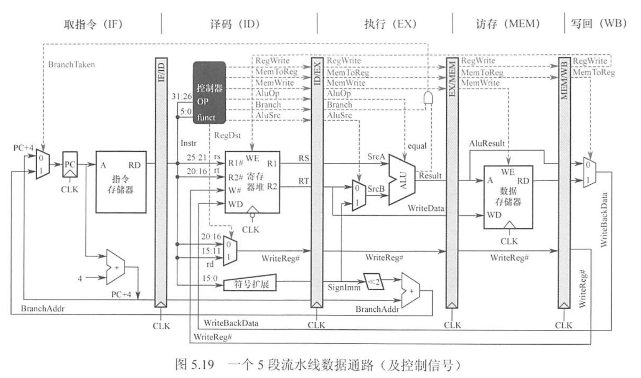 - 译码/读寄存器(ID):操作控制器对指令进行译码,同时从寄存器堆中取操作数