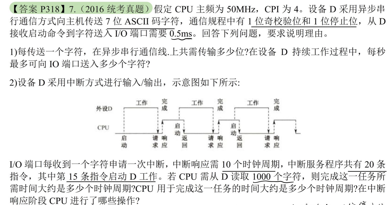 CPU用于B输入输出时间 = $40000\times500 = 2\times10^7$个时钟周期