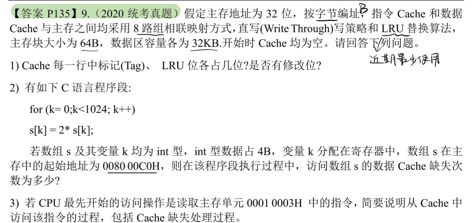 数据cache容量 = $8\times(64+\frac{20}{8})B = 532B$