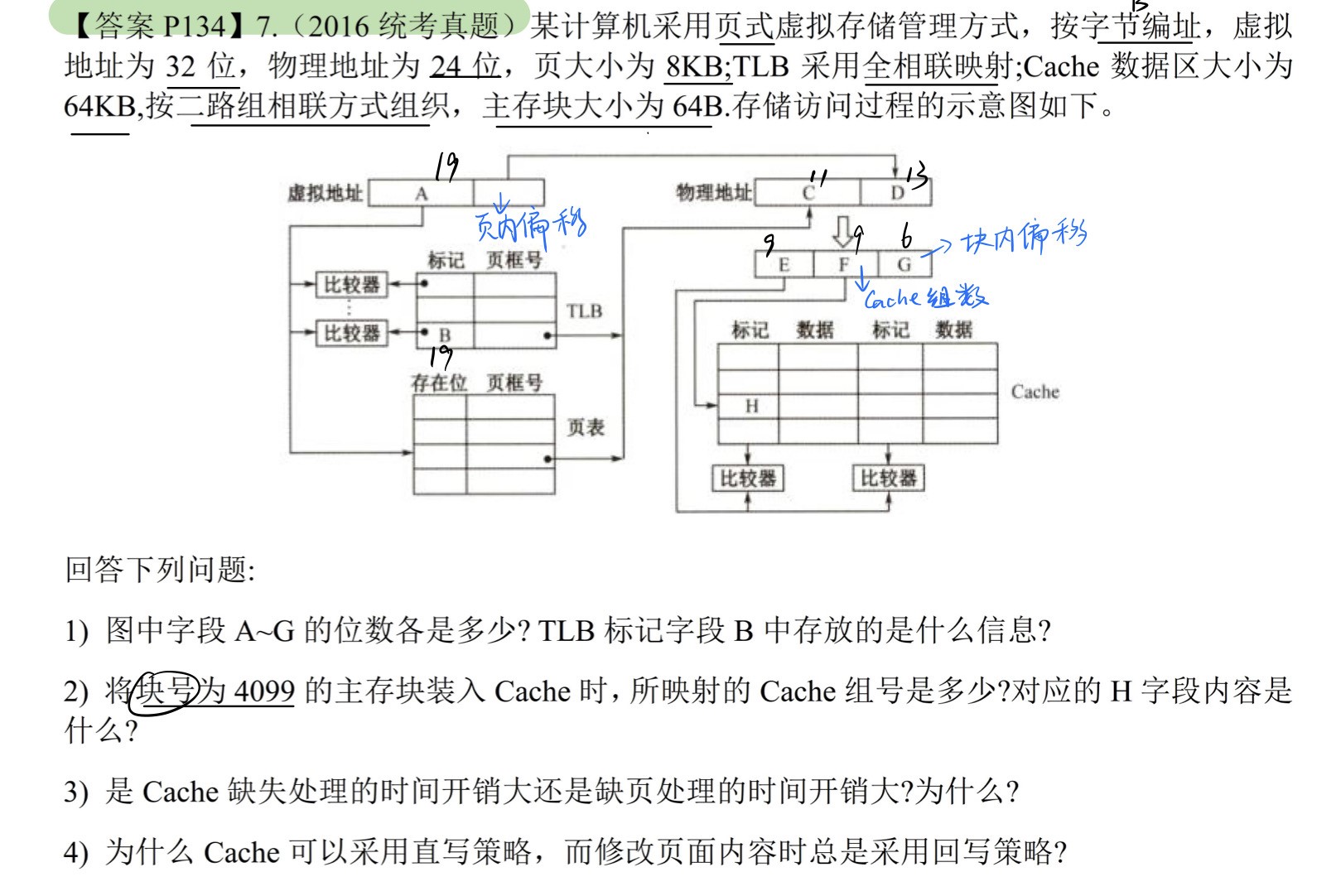 主存块大小64B =>块内地址占6位