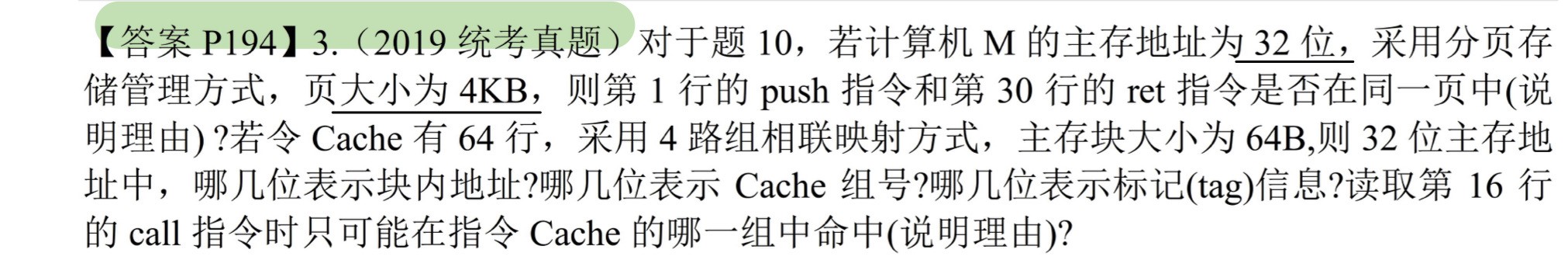 块大小32B = 块内偏移量占5位($2^5 = 32$)
