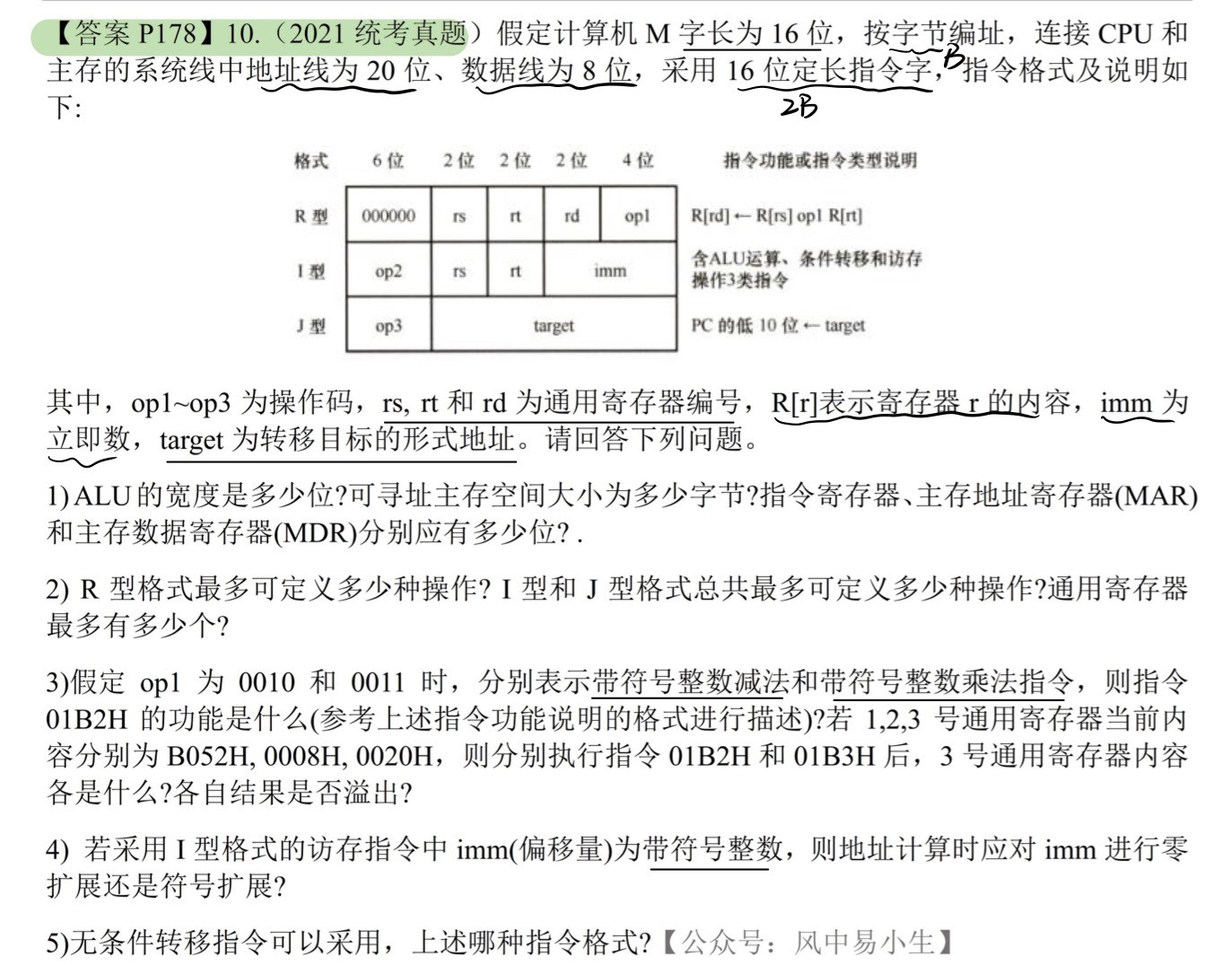 ALU宽度16位,可寻址大小 = $2^{20}B = 1MB$