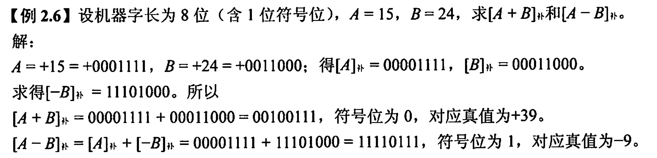 - 例:a = -19,$[a]_原 = 1001 0011 [a]_反 = 1110 1100 [a]_补 = 1110 1101$