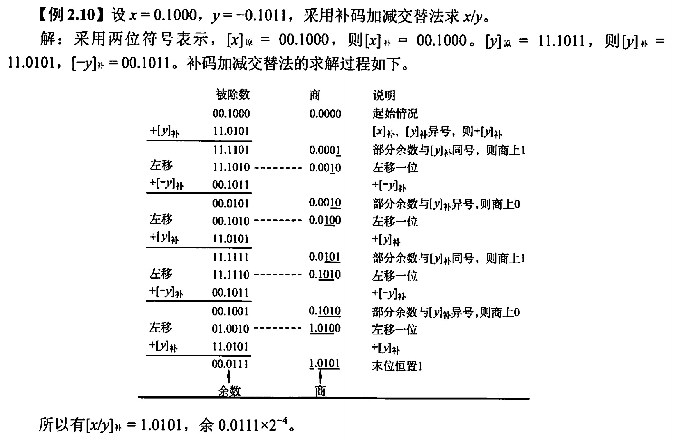 - 如$x_2 = -10101,$字长为8位,$[x_2]_移 = 2^7 + (-10101) = 01101011$