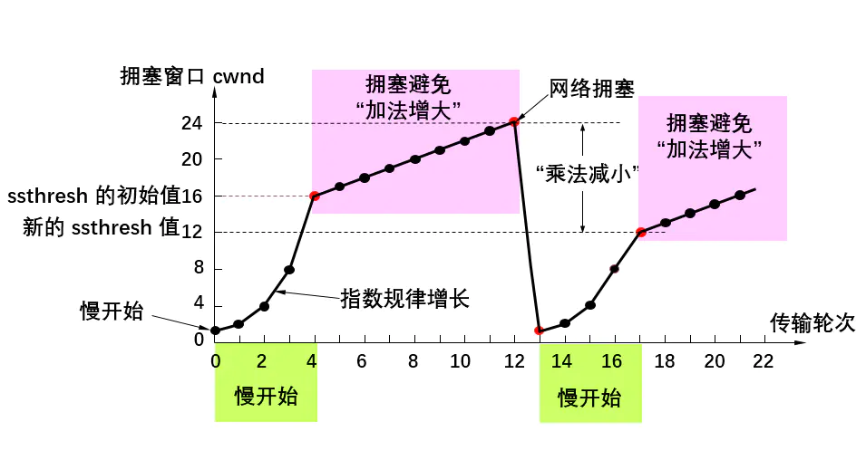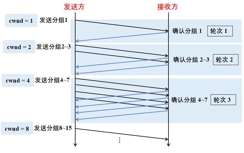 - 在达到慢开始门限ssthresh前,cwnd成线性增长