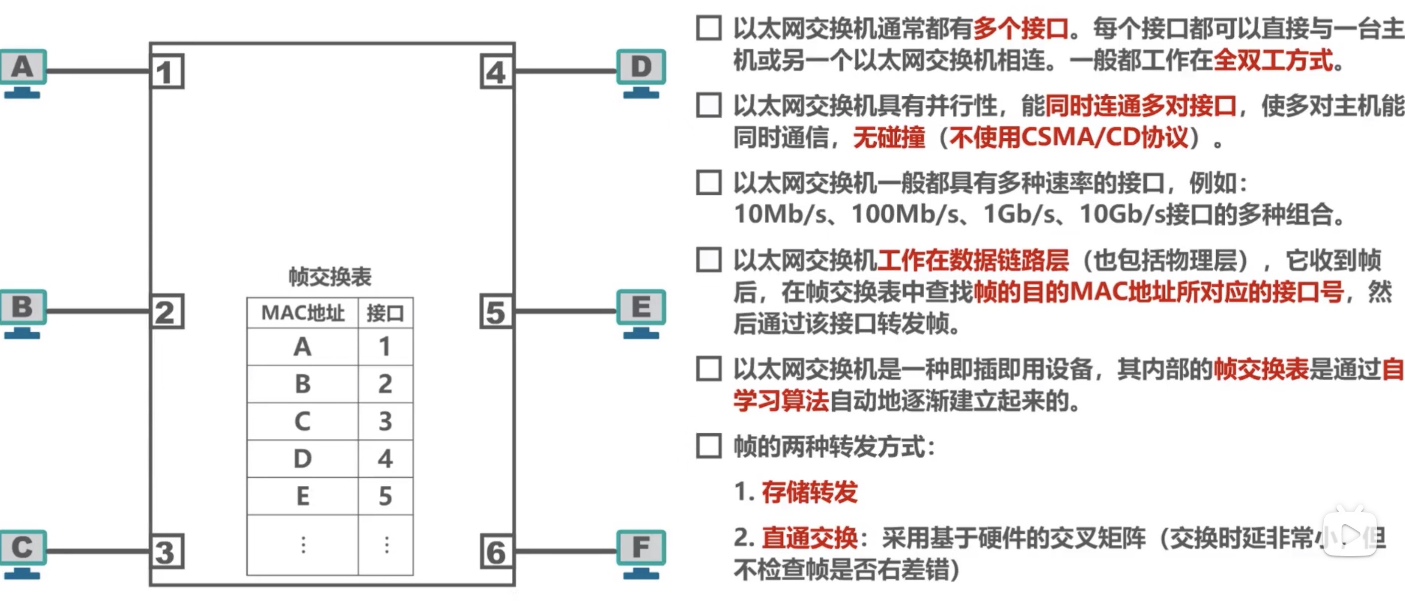- 以太网交换机工作在数据链路层(也包括在物理层)