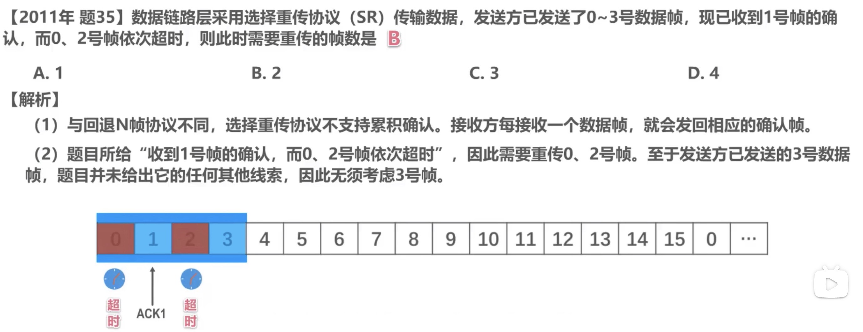 SR协议 | 1<发送窗口$\leq2^n-1$;1<接受窗口$\leq$发送窗口 |