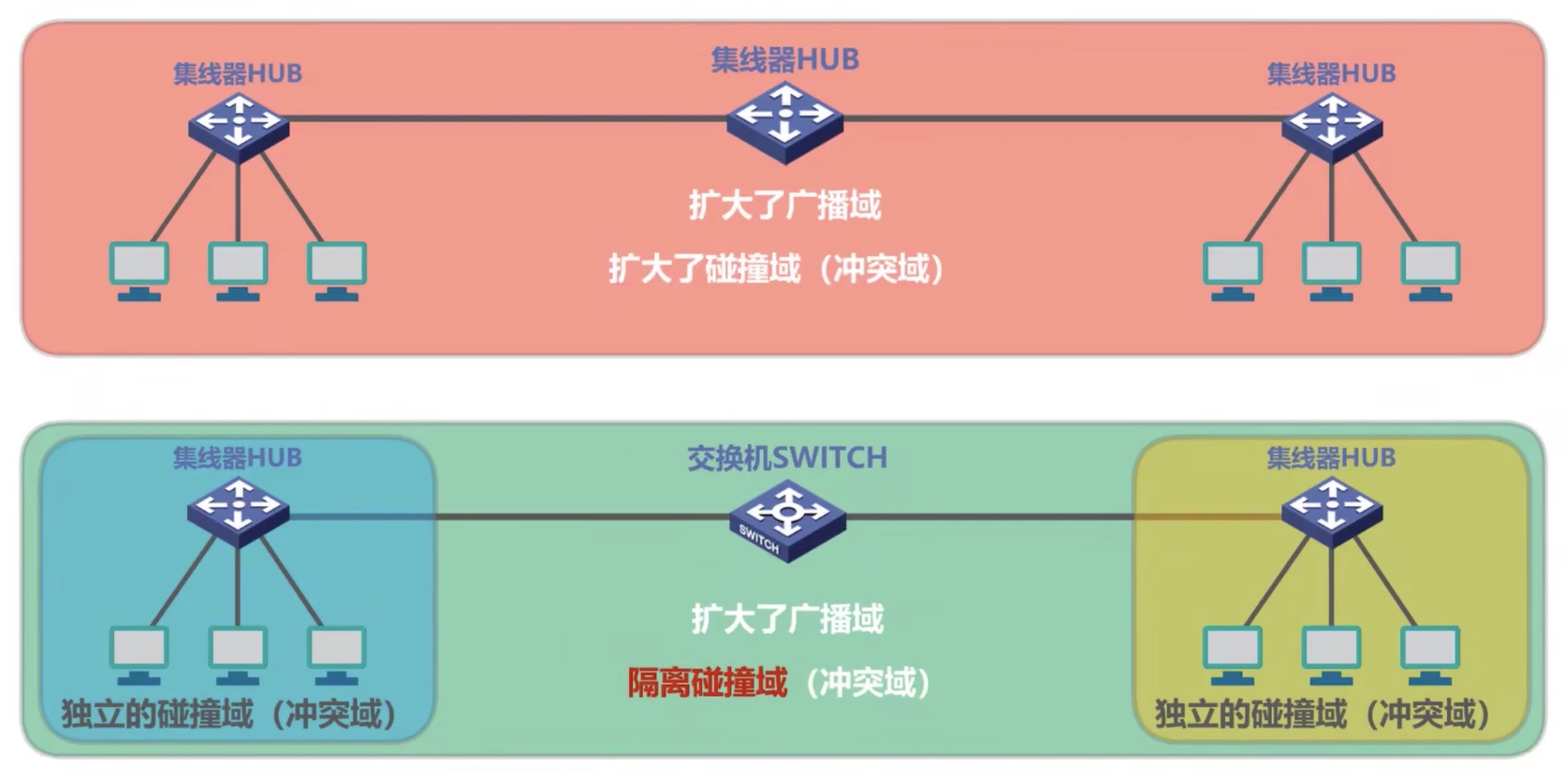 OSI参考模型层次 | 三层:物理层,数据链路层,网络层 | 两层:物理层,数据链路层 |