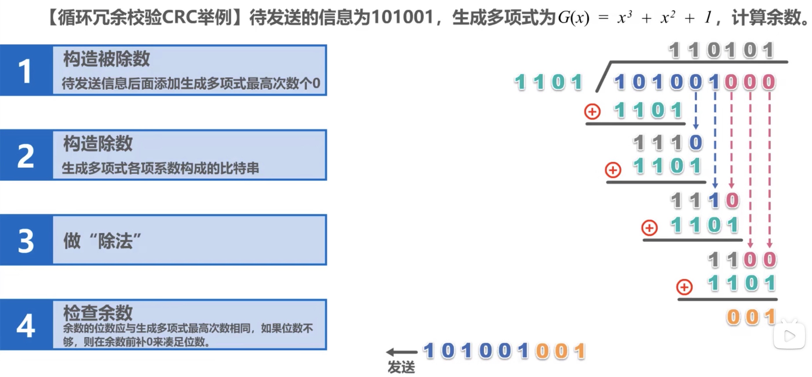 - CRC具有纠错能力,但数据链路层只使用了他的检错功能,检测到帧出错直接丢弃