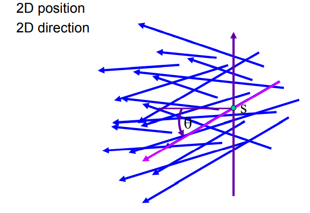 - 取光线上的任意两点定义整条光线(二维位置和方向)