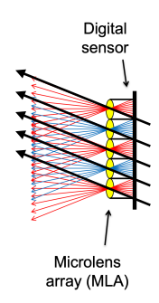 将原本的像素换成了微透镜,这些微透镜可以把来自各方向的光分散到不同的方向上去,在后面再将它记录下来