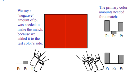 做颜色匹配时,给定一个固定波长,需要将这3个颜色中相同波长的值混合起来