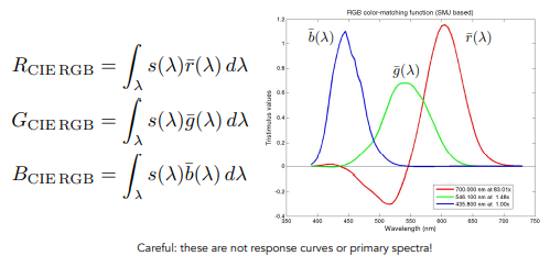 CIE是一个组织,定义了RGB系统,给定的任何一个颜色是单波长的颜色,光线的SPD是一个单一的函数