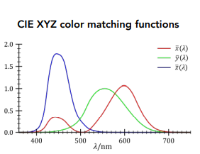 CIE XYZ系统人为定义了一个颜色匹配函数,