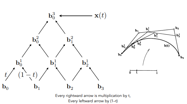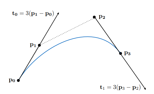 $$b^n(t) = b_0(1 - t)^3 + b_1 3t(1 - t)^2 + b_2 3t^2(1 - t) + b_3 t^3$$