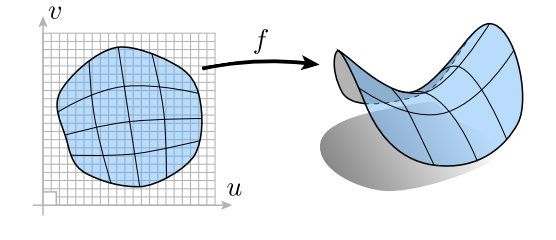 $$f:R^2 \rightarrow R^3;(u,v) \rightarrow (x,y,z)$$
