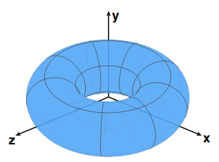 $$f(x,y,z) = (2 - \sqrt{x^2 + y^2})^2 + z^2 - 1$$