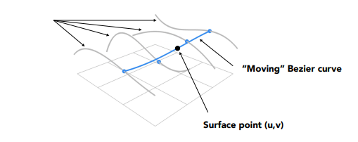 - 使用 de Casteljau 算法来计算四条贝塞尔曲线上各自的U,这将会为"移动"贝塞尔曲线提供4个有效的控制点