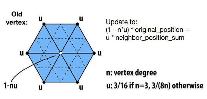 - 根据权重更新顶点的位置(新旧顶点各自以不同方式进行更新)