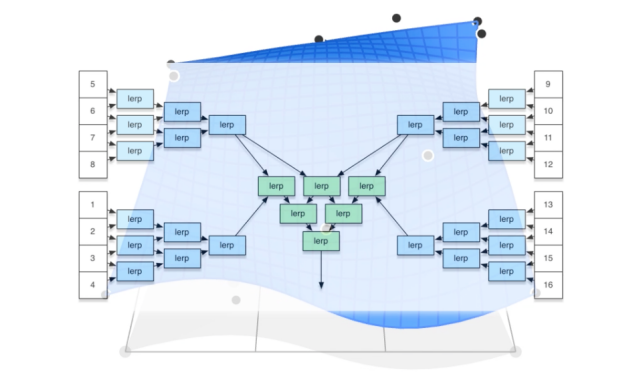 构造一个三次方贝塞尔曲线需要总共四个输入,都递归使用线性插值