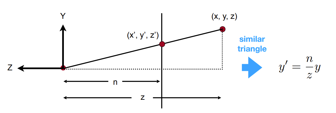 $$y^{'}=\frac{n}{z}y$$ $$x^{'}=\frac{n}{z}x$$