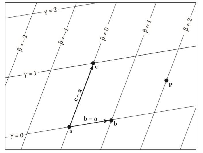 $$p = a + \beta(b - a) + \gamma(c - a)$$