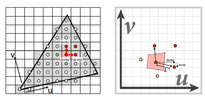 在计算对应层次的mipmap时,我们需要相邻采样点的纹理坐标来估计纹理内存