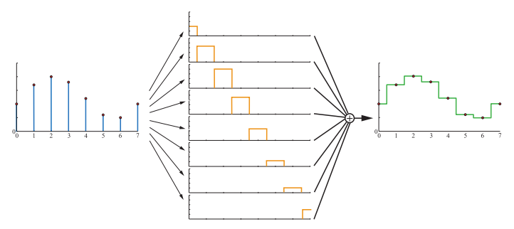 直接将采样点位置替换为box filter波形的方式会因 box filter 本身的不连续使重建信号产生不平滑的现象