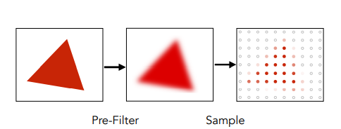 由下图可见,滤波可以对三角形的边缘产生模糊,进而产生一定的反走样效果