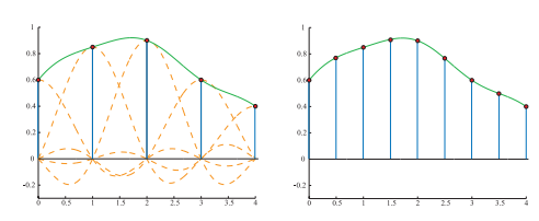 设采样信号灯的采样间隔为整数列,间隔为1,则我们可以通过重采样来将采样点间隔变为a,当$a>1$时会缩小信号(downsampling),$a<1$时会放大信号(upsampling)