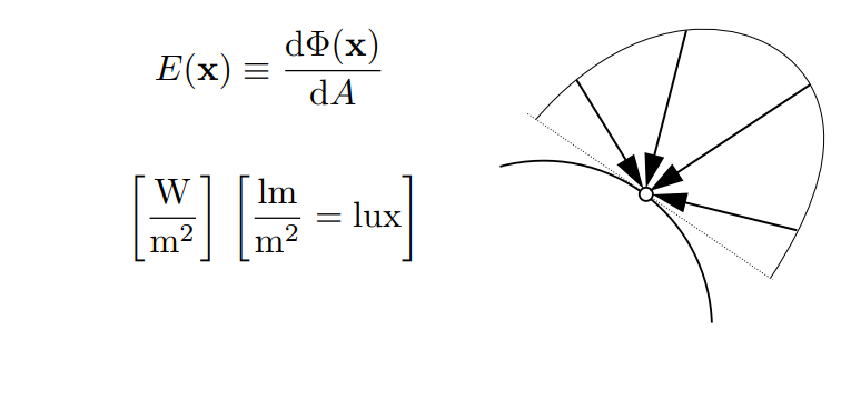 Irradiance:每单位投影面积的power