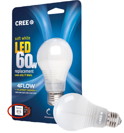 标注输出815流明,11瓦功率相当于白炽灯60瓦功率