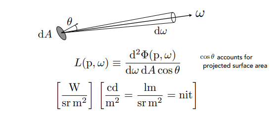 Radiance:每单位投影面积的Intensity
