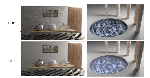 在下图中类似的场景下MLT的效果很好,其适合做复杂、困难的光线传播