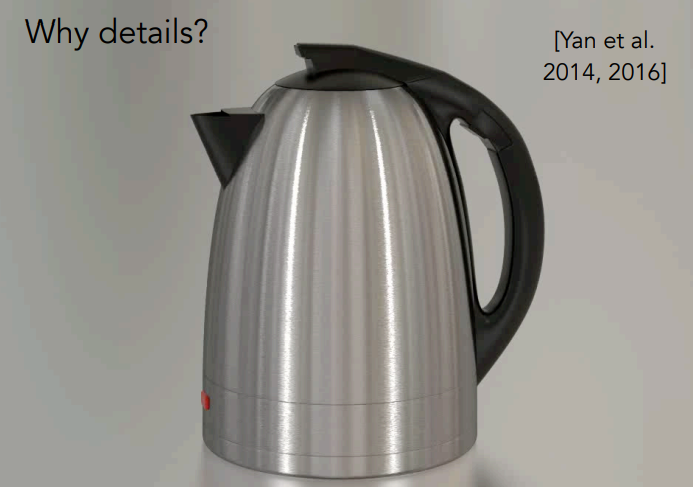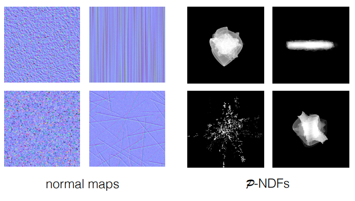 如果考虑像素覆盖的范围,就可以得到各种各样神奇的法线分布(NDF)。可以想象一个像素覆盖了非常多的微表面,那这些微表面自然会显示出一些统计学的规律,那如果覆盖的范围小,就会显示出一些很独特的性质,法线分布就会看上去很有特点