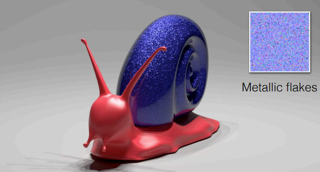 Metallic flakes:可替换别的模型,例如很多人在车漆中添加的亮片,亮片会形成很多不同的方向,不同方向会形成不同的反光