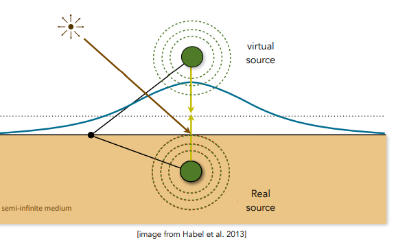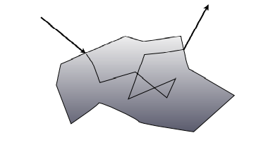 在物理上,常常认为光线在某一个点进入某一个表面,在里面发生了大量散射,从另一个点钻出