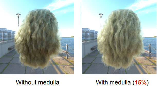 由此可见,Marschner Model中忽略髓质在动物毛发计算中并不适用