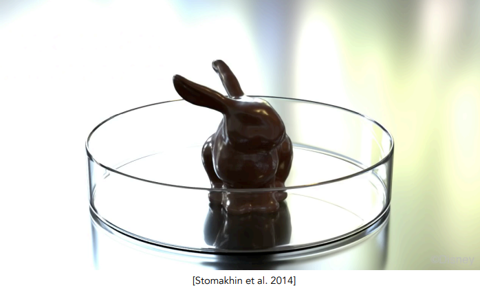 Caustics是光线经过聚焦打在游泳池底,然后被人眼看见。光线要穿过水的表面(凹凸不平,还有浪),会被聚焦到一系列的地方(水面有办法将光线聚焦到一系列的线上)。这种情况渲染起来非常困难,因为假设游泳池底是diffuse的,光线会先经过一个specular的水面,游泳池底被我们看见也要经过一个specular(这种路径简称SDS(specular-diffuse-specular))