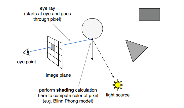 - 光线从光源传播到眼睛(且光路是可逆的)